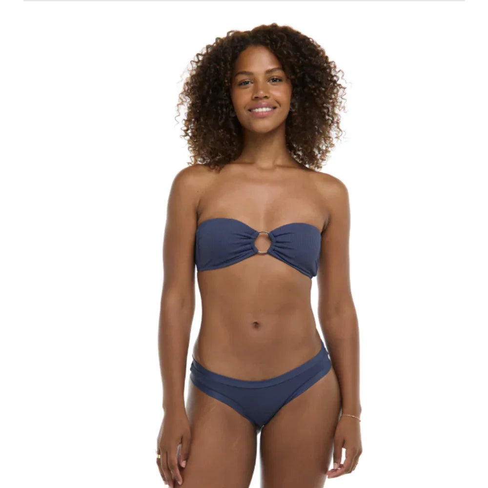 Elevate your beach style with the adaptable Marissa bandeau. Crafted with textured knit fabric and a decorative metal ring, it's a fashion statement for your swimwear collection. Wear it solo for a striking, sophisticated beach look, or pair it effortlessly with your favorite sheer cover-up for a fashion-forward beach ensemble. The removable spaghetti strap provides versatility, allowing you to create multiple beach-ready styles. Marissa is the ultimate choice to amplify your beach fashion game with ease.