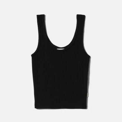 Step up your basics with this pointelle slim fit tank. Made from a lightweight cotton knit, it boasts a breathable yet body-skimming fit, perfect for layering or wearing solo on warmer days. Its scalloped trim at the armholes and necklinetake this simple silhouette to another level. Pair it with high-waisted jeans and sandals for a casual yet put-together vibe, or tuck it into a sleek pencil skirt for the office. However you wear it, this slim fit tank brings a touch of trend-driven flair to your essentials.